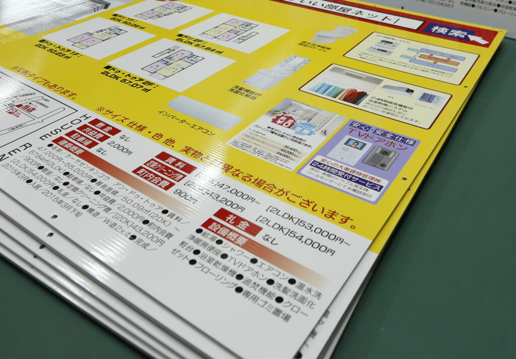 同業者様、短期イベント向け等メディア材質などを見直した商品設定もございますのでお気軽にお問い合わせください。また後加工や施工についても自社で行うため全体の予算に合わせた制作物の数量調整や納期日程の柔軟な対応が可能です。