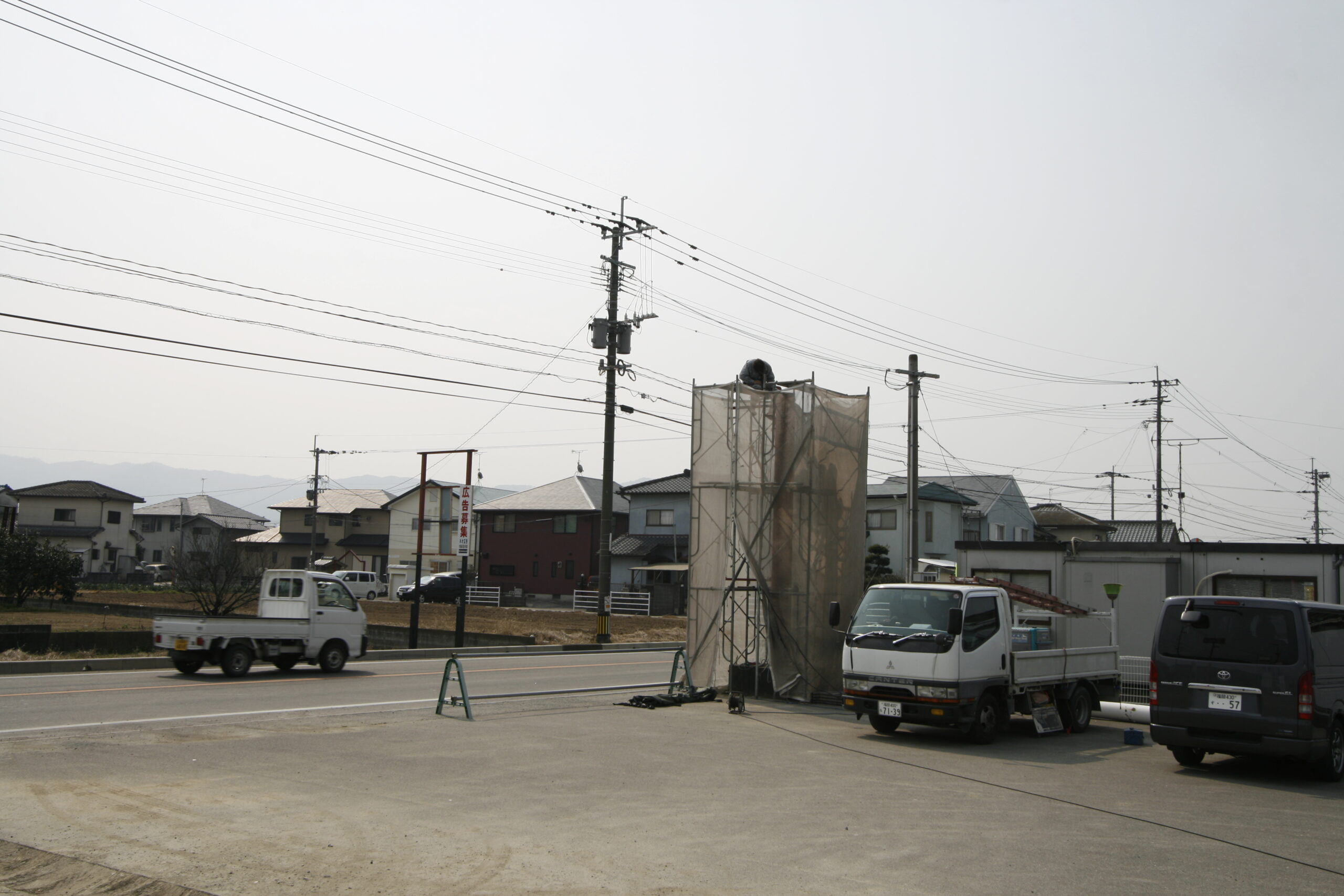 上は跡地の画像です。この状態から内装業者さんや塗装屋など様々業者さんが入り改装が進んでいきます。外装の塗装がひと段落したところから僕らの作業がはじまります。