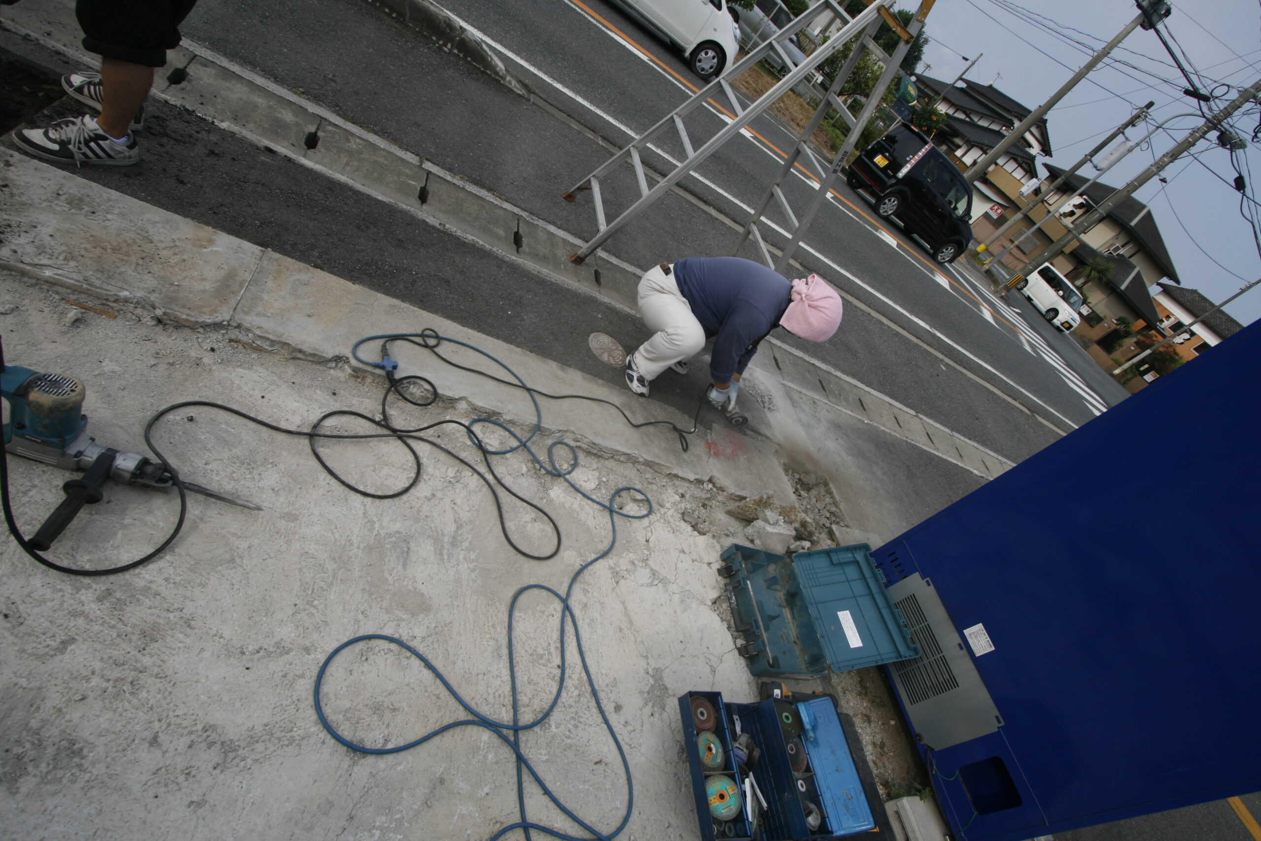 配線を通す道を確保するためアスファルトをカット(配管埋設後にアスファルトで埋め戻します。)