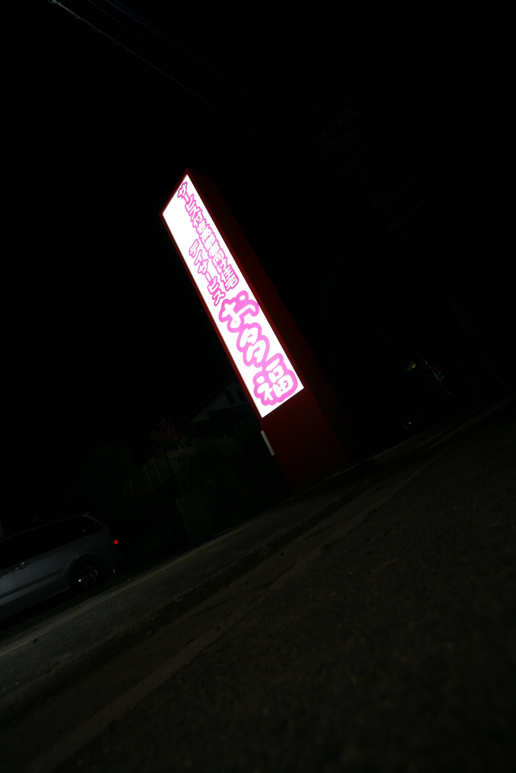 ご依頼内容としては「書体は既存サインをベースに、ピンクと赤で」、「外観はスマートにしたいから照明は内側から照らしたい」とのご要望を承りました。そして、こちらが撤去予定の既存サイン