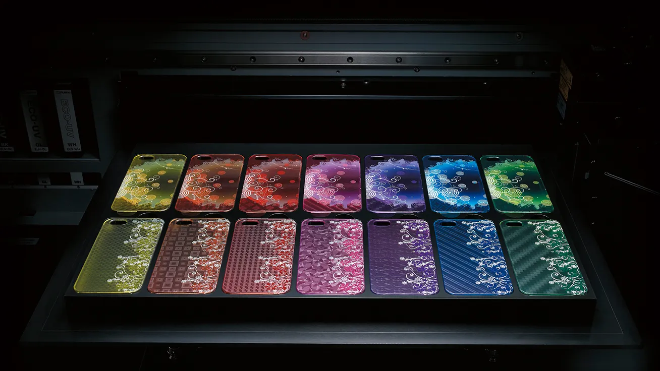 様々な素材へのプリントを可能とするフラットベット型 UVプリンタ